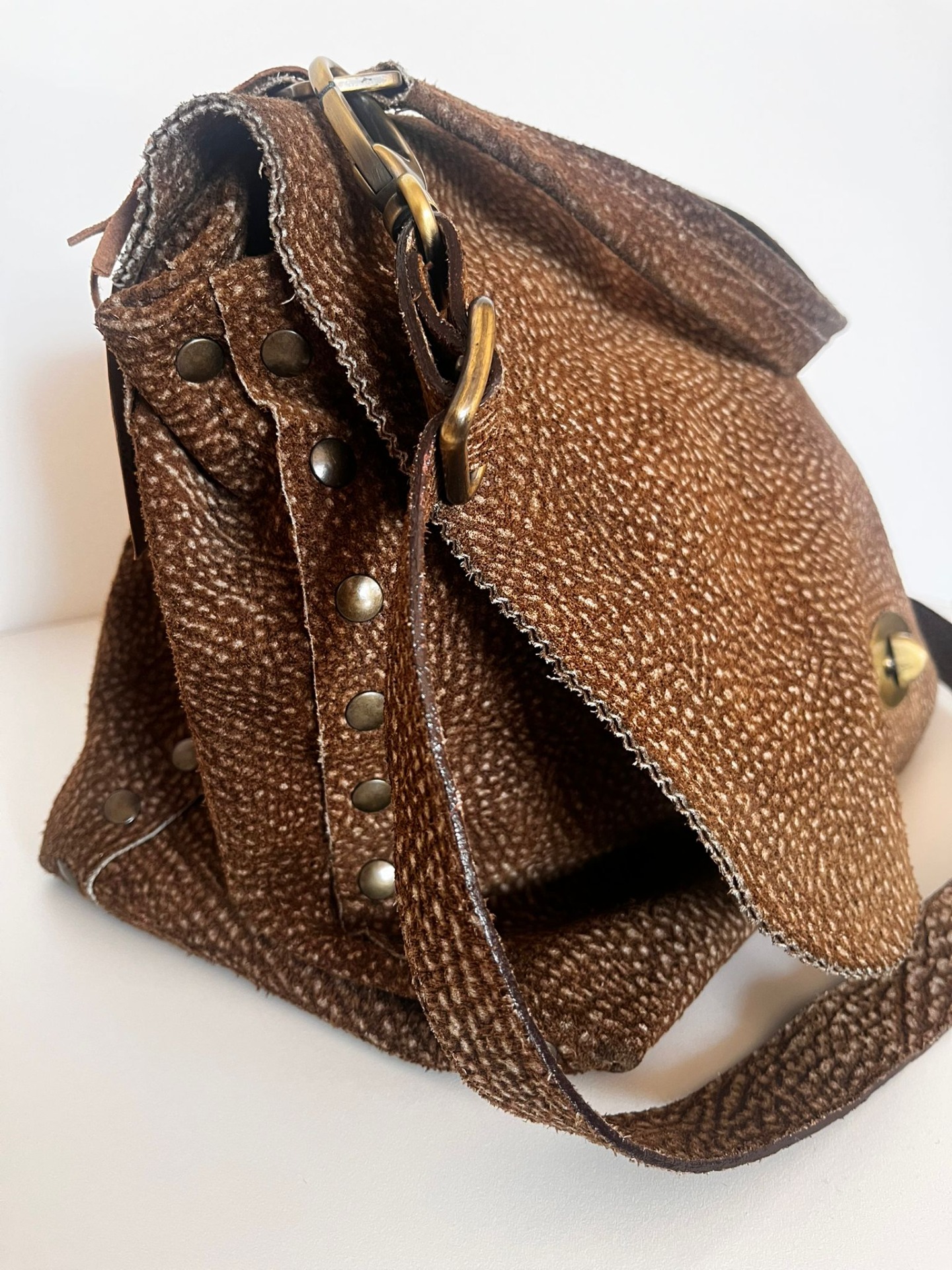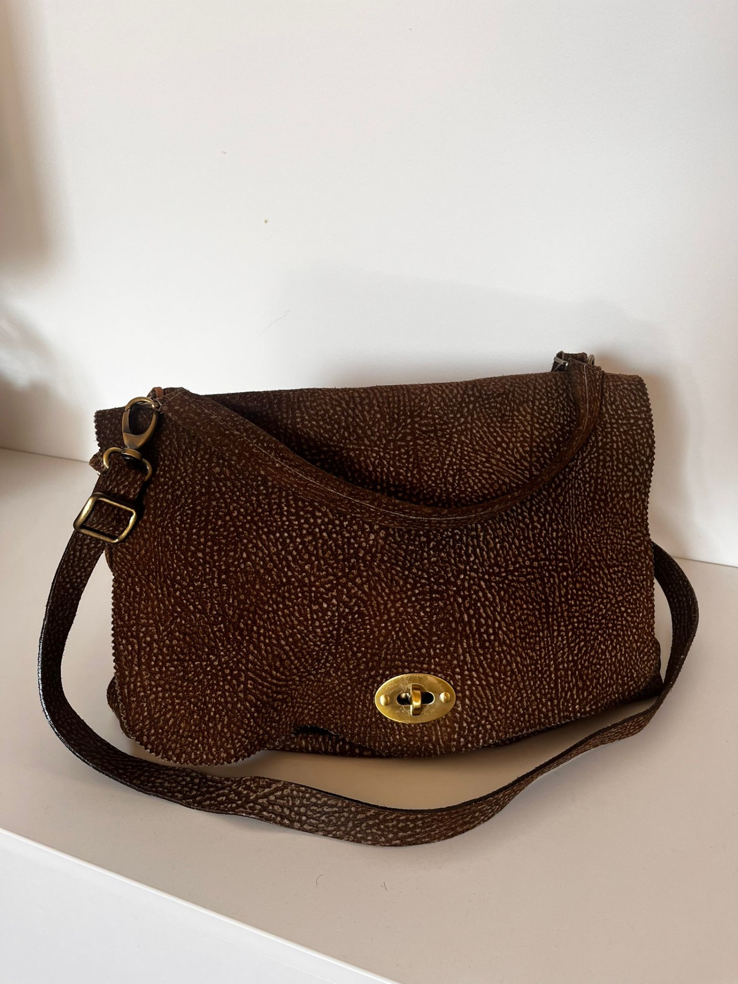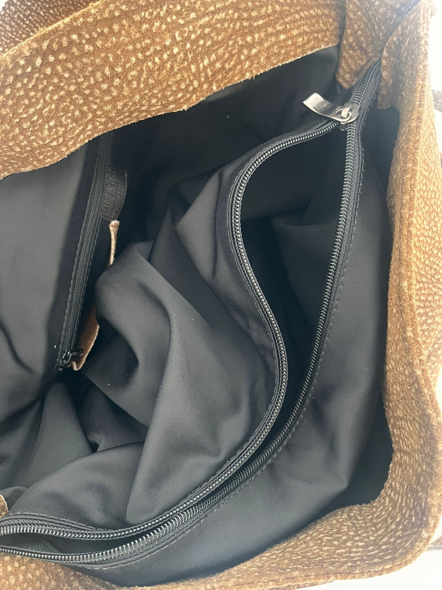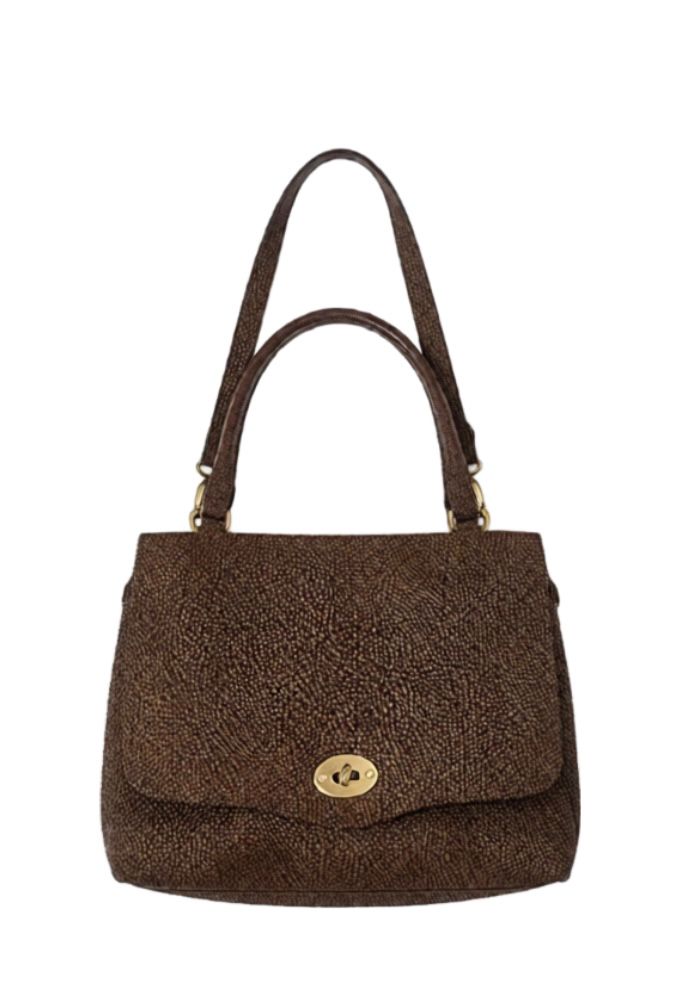 Kabelka ve stylu Borbonese. Jemný tečkovaný / zrnitý pattern. Připomíná koroptví oko (partridge eye)
