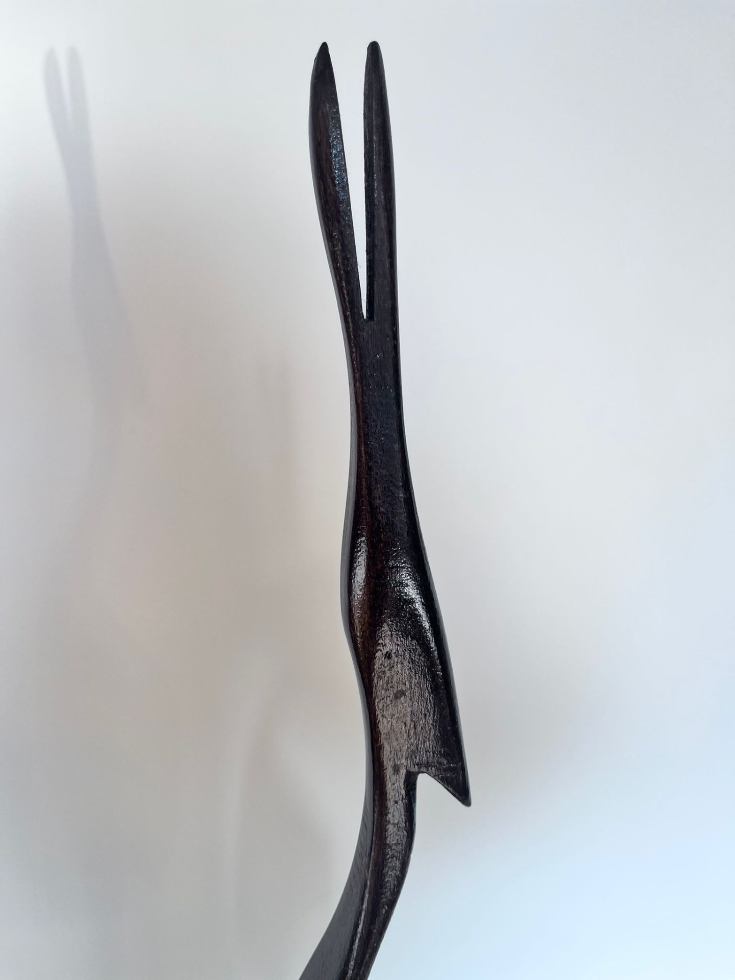 Socha je vyřezána z masivního dřeva a nese stopy ruční práce i přirozeného stárnutí materiálu. Díky štíhlým proporcím působí lehce a vzdušně, přesto je výrazným akcentem v prostoru. Ideální jako samostatný objekt do obývacích prostor, vstupních hal či interiérů.
