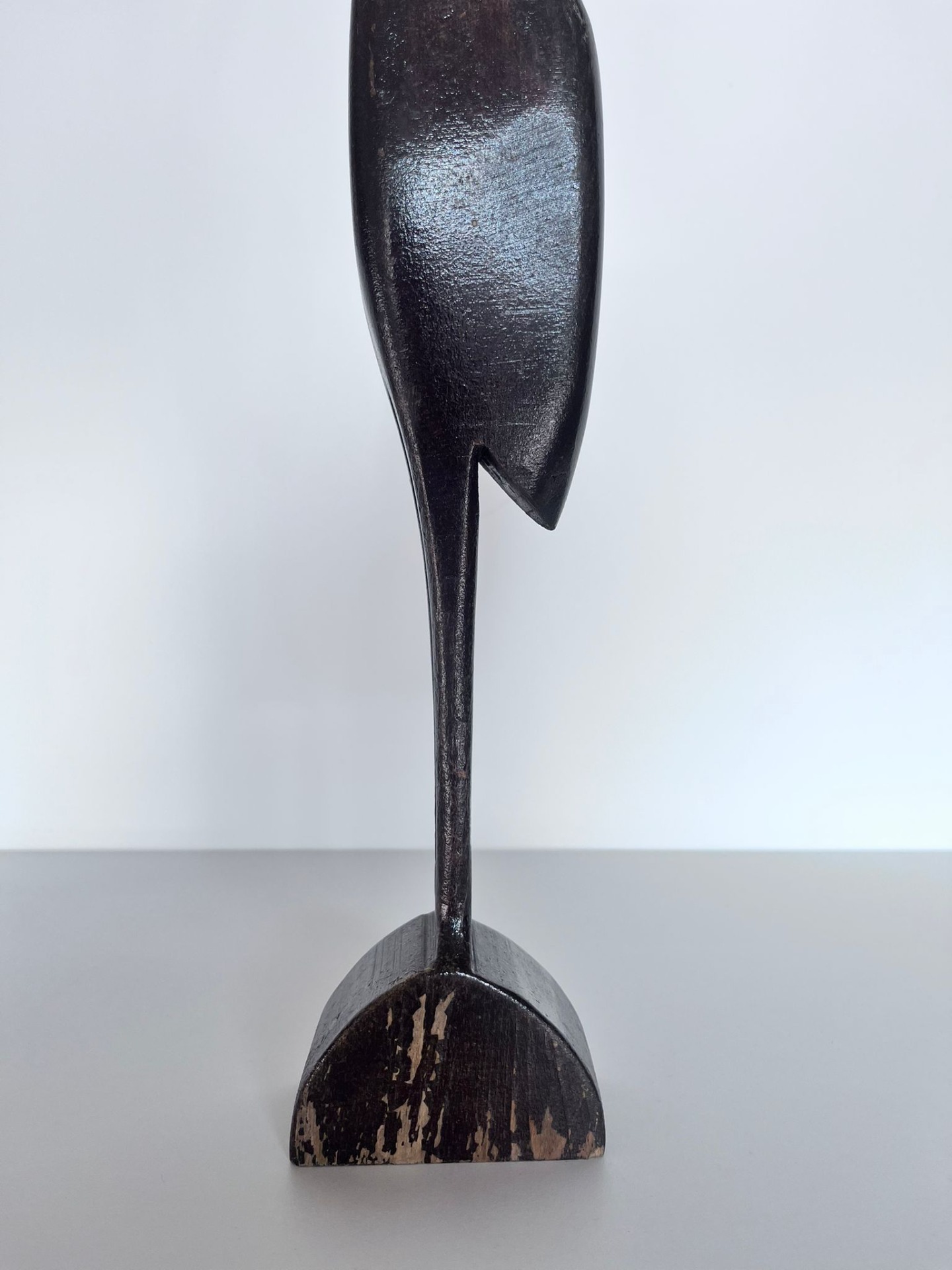 Elegantní dřevěná socha volavky s výrazně protáhlou siluetou představuje nadčasový solitér pro sofistikované interiéry. Minimalistická forma, jemně abstrahovaná z přírodního motivu, zdůrazňuje vertikalitu a klid, zatímco tmavá patina dřeva dodává objektu hloubku a vizuální noblesu.